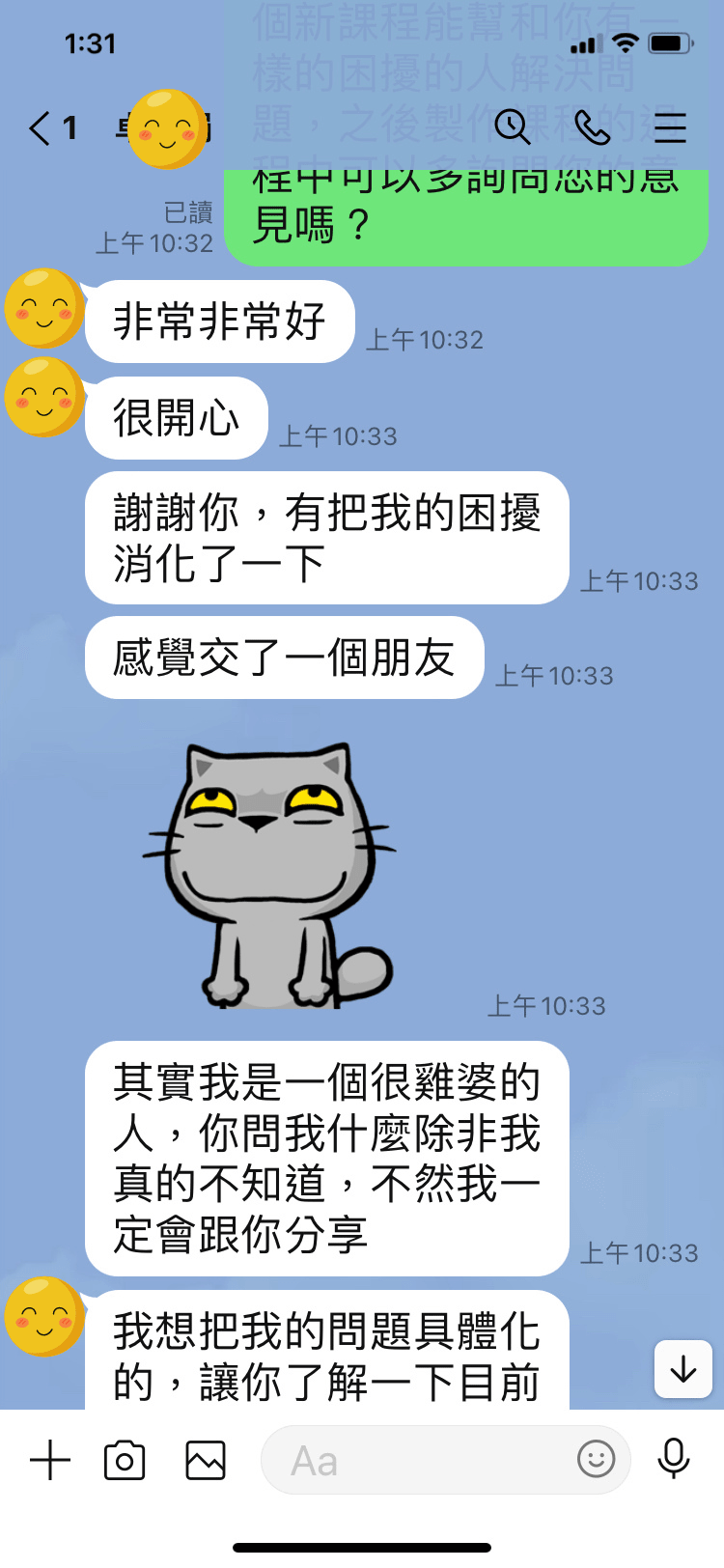 我們在課程的最後有提供老師私人的LINE,任何有關課程的問題,都可以直接用LINE詢問討論。如果是很多人共同的問題,我們會統一製作新影片解答。
