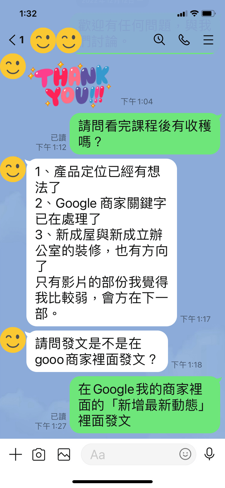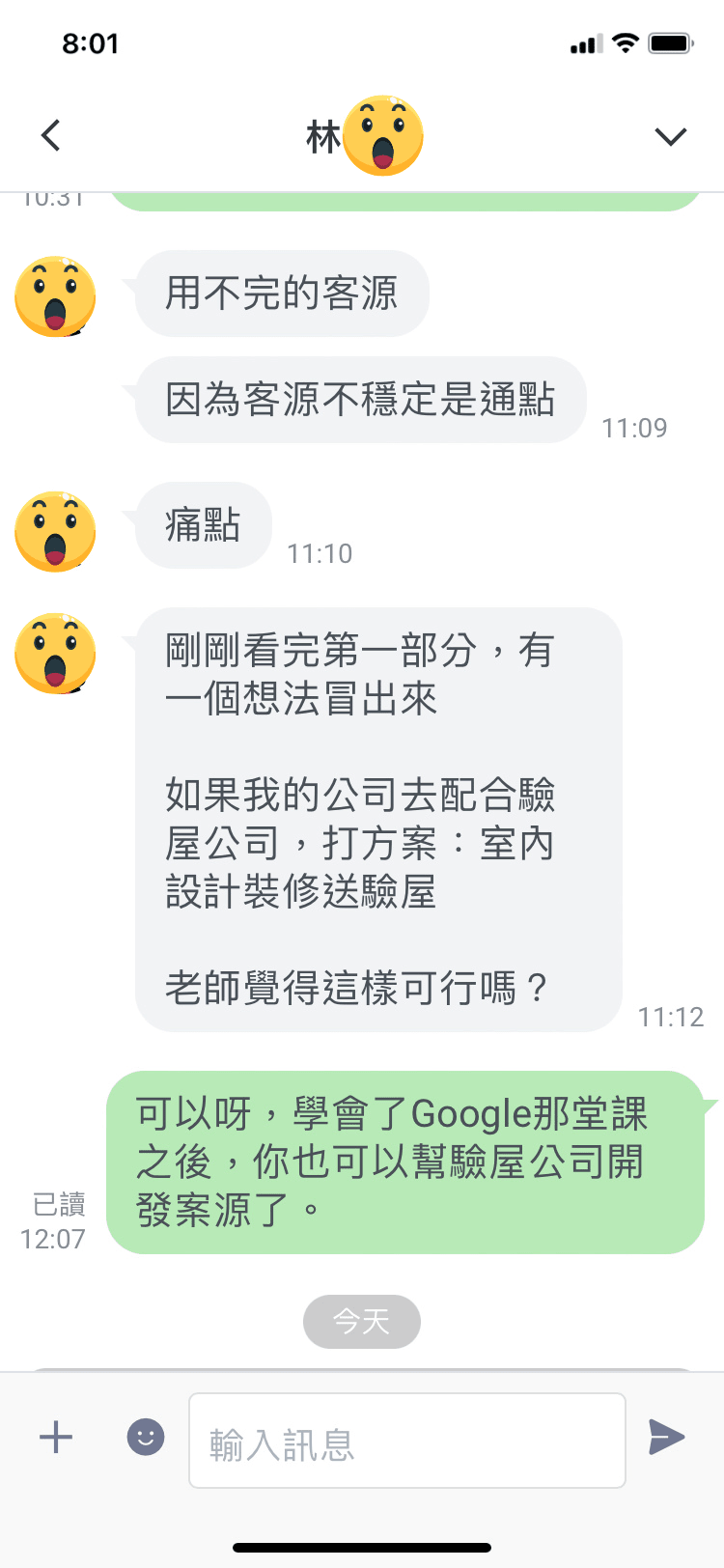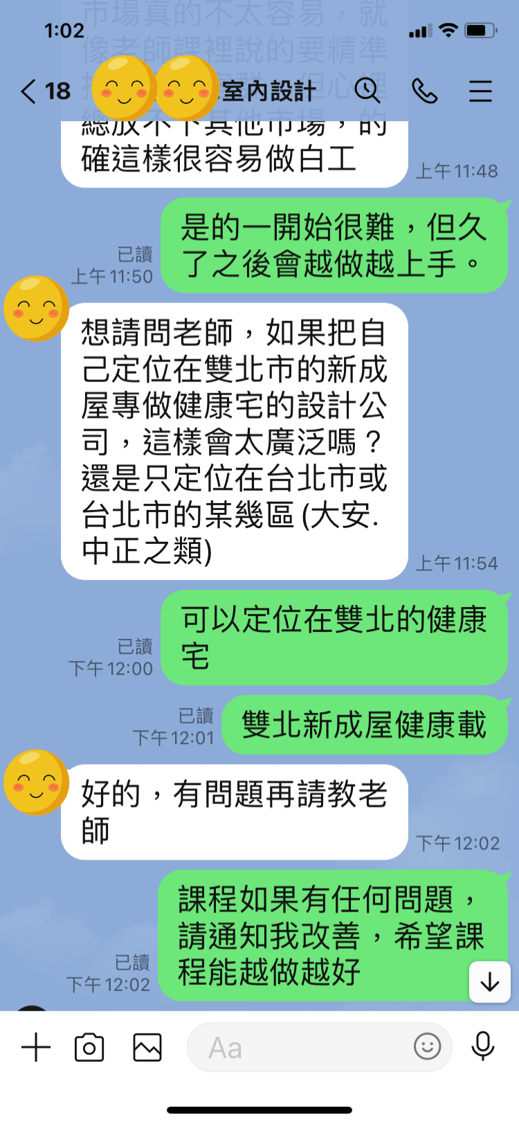 至於後續課程專注於開發客源,與增進搜尋的曝光,一些關鍵字操作的技巧,都是很實用的操作內容,也包括了現今一些最流行的自媒體曝光的手法技巧,這些方法對於現今競爭激烈的室內設計行業中,都是很有幫助的,謝謝您的教導